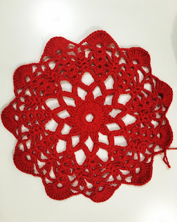 Só que vou aumentar duas carreiras de círculos para ficar como uma toalha para mesa redonda!